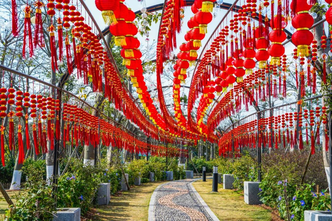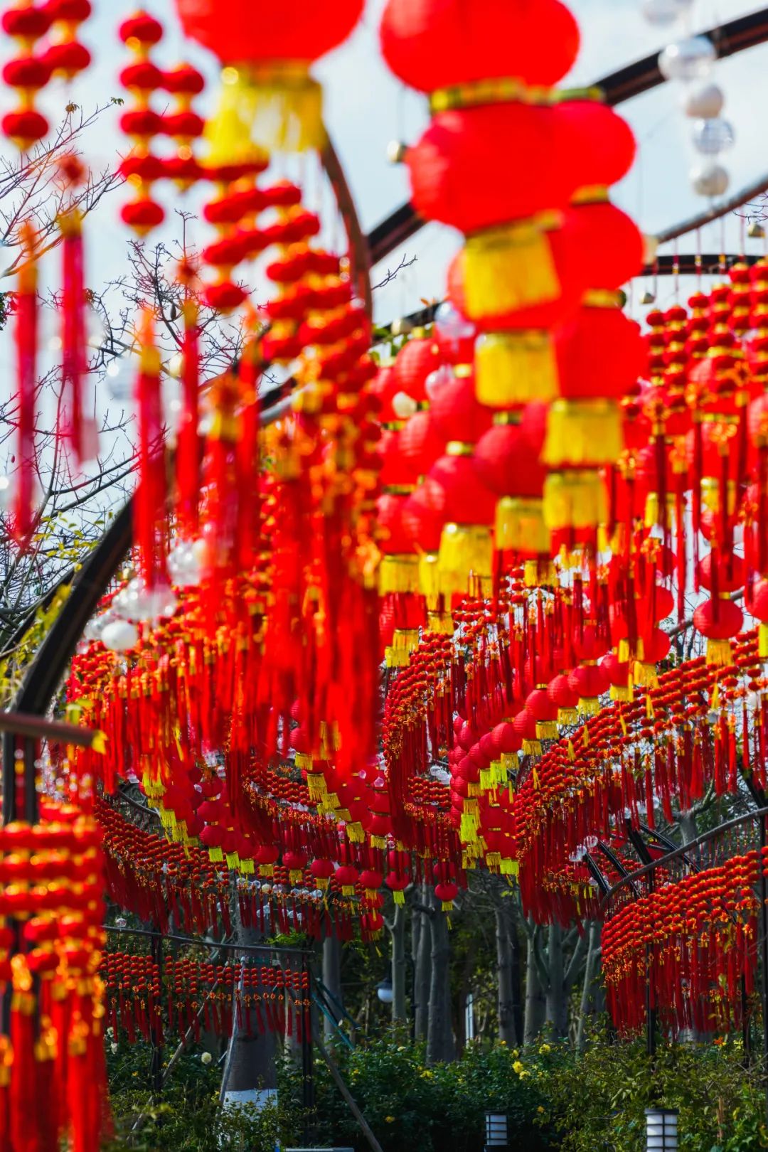 天沐河賽艇公園已悄悄“喜上樹(shù)梢”,火紅的燈籠串兒相繼攀上枝頭;天沐河兩岸的綠水青山,在陽(yáng)光與微風(fēng)中歲月靜好;通往小橫琴山的山體步道也披上嶄新的“紅袍”,靜候登山游人們的到來(lái);花海長(zhǎng)廊的風(fēng)鈴長(zhǎng)廊趁此新春良辰,煥然一新,喜慶的燈籠與悅耳的風(fēng)鈴在風(fēng)中共同起舞……