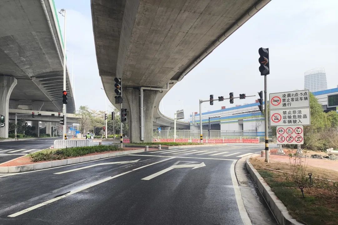 對深井通道“二線”通道內有局部破損、高差的道路進行維修,共計維修瀝青路面990㎡,有效提高了該段道路行車的安全性和舒適性。此外,通過改造交通信號燈、拓寬車道、將綠化帶改造為瀝青路面等多種方式,進一步優(yōu)化交通組織,保障道路交通秩序環(huán)境安全有序。
