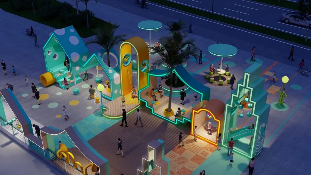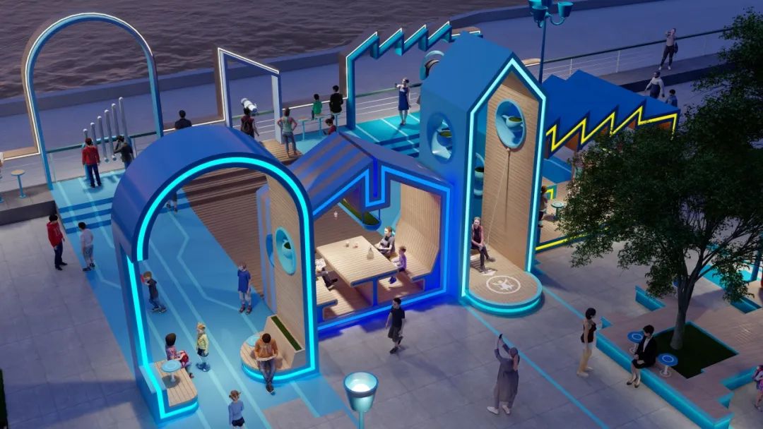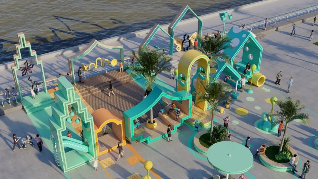 在一個(gè)個(gè)形態(tài)各異的“城市小屋”串聯(lián)下,分別以綠色、藍(lán)色為主色調(diào)的城市客廳已基本成型。
