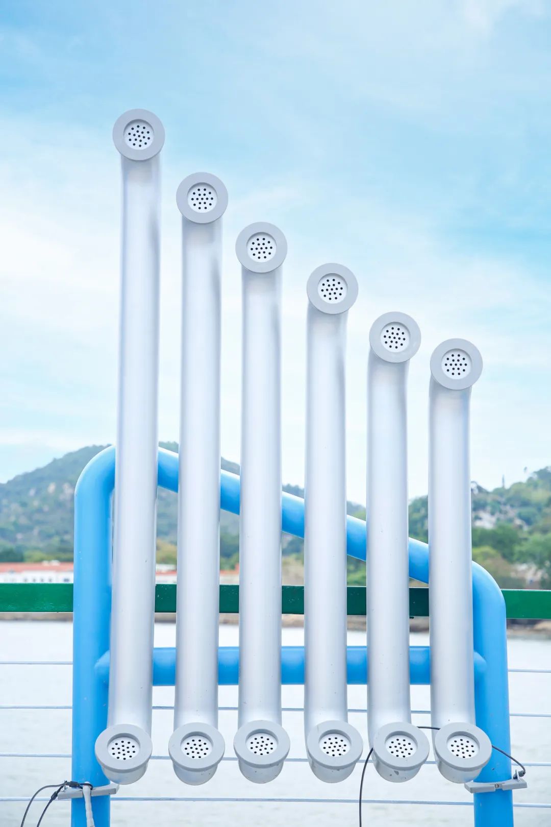 城市家具的設(shè)計(jì)風(fēng)格,充分融合了粵澳文化和橫琴碼頭地域特色與周邊環(huán)境和諧相融,高顏值的城市家具旁,便是如畫(huà)的風(fēng)光,放眼望去,充滿(mǎn)“藝術(shù)范”的城市家具與碧海藍(lán)天交相輝映,令人心曠神怡。