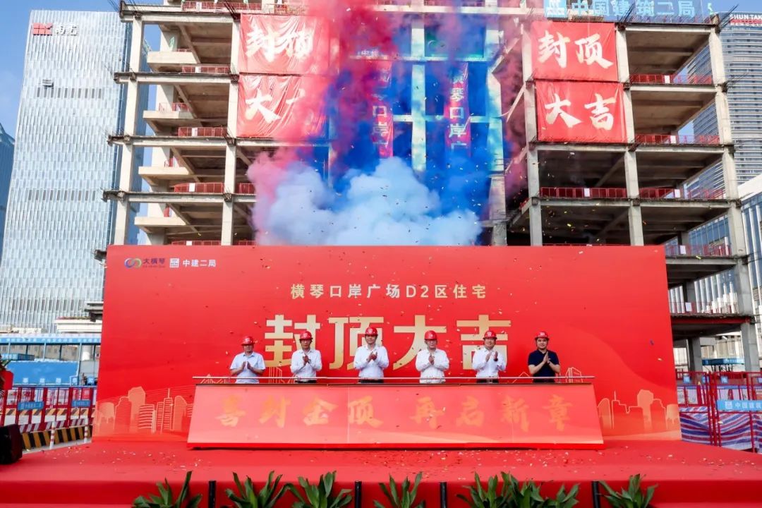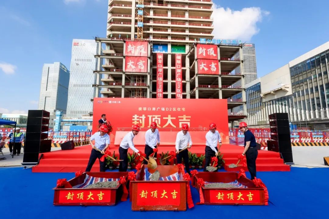 9月27日上午,由珠海大橫琴集團有限公司(以下簡稱大橫琴集團)下屬企業(yè)珠海大橫琴口岸實業(yè)有限公司建設(shè)的橫琴口岸D2區(qū)住宅主體結(jié)構(gòu)順利封頂。大橫琴集團黨委副書記、董事、總經(jīng)理王宇聲,中建二局華南公司黨委書記、董事長曲紅波,大橫琴集團總經(jīng)理助理呂海濤等領(lǐng)導嘉賓出席儀式,各參建單位代表及項目一線職工共計100余人參加活動。