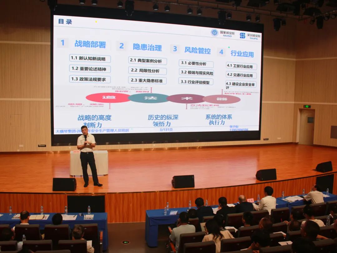 本次培訓(xùn)班為期一天,培訓(xùn)對象包括集團(tuán)本部業(yè)務(wù)骨干,各下屬企業(yè)安全總監(jiān)、安全生產(chǎn)和生產(chǎn)經(jīng)營(工程)部門負(fù)責(zé)人及業(yè)務(wù)骨干等170余人。培訓(xùn)方式為外部專家講課,培訓(xùn)緊緊圍繞“拓展管理思路、提高管理質(zhì)效”的主題,重點(diǎn)剖析安全風(fēng)險(xiǎn)分級管控和隱患排查治理雙重預(yù)防機(jī)制,進(jìn)一步探討企業(yè)落實(shí)安全生產(chǎn)主體責(zé)任的對策建議。