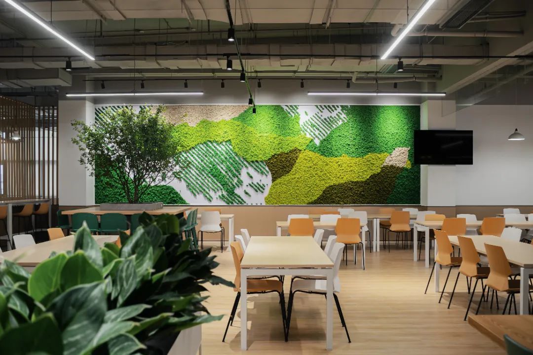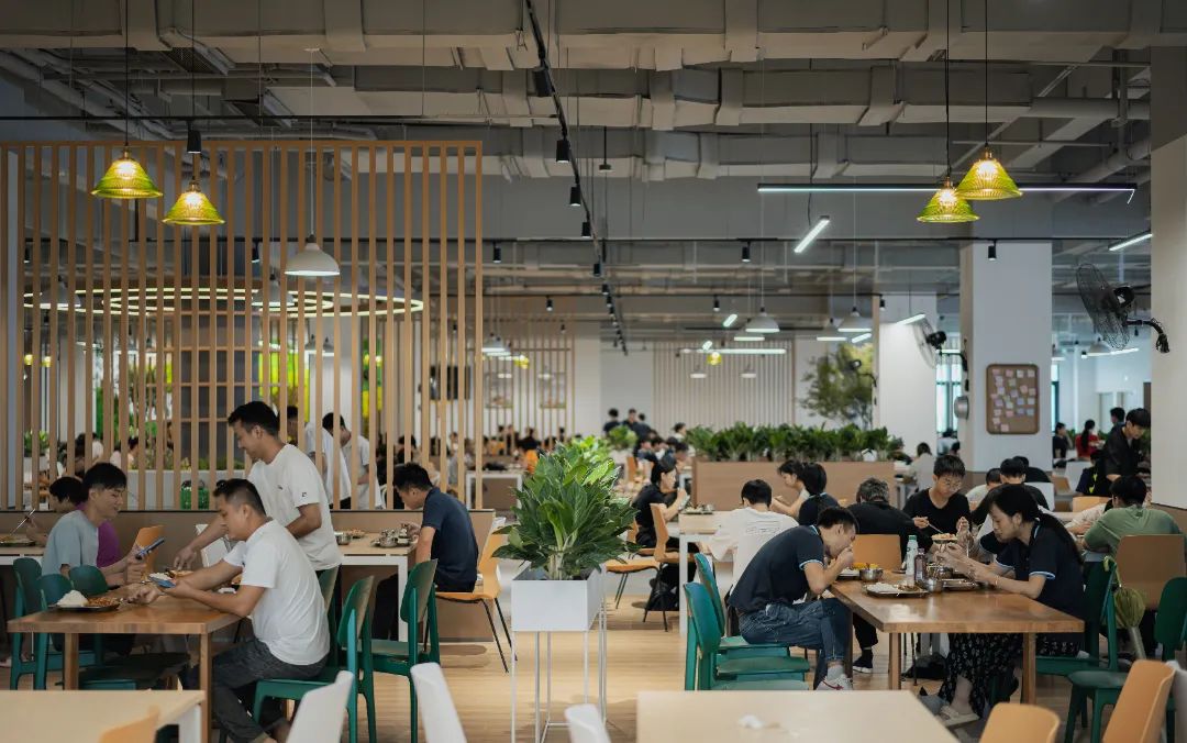 走進(jìn)“廠其林”食堂,仿佛將一片小森林搬了進(jìn)來(lái)。
