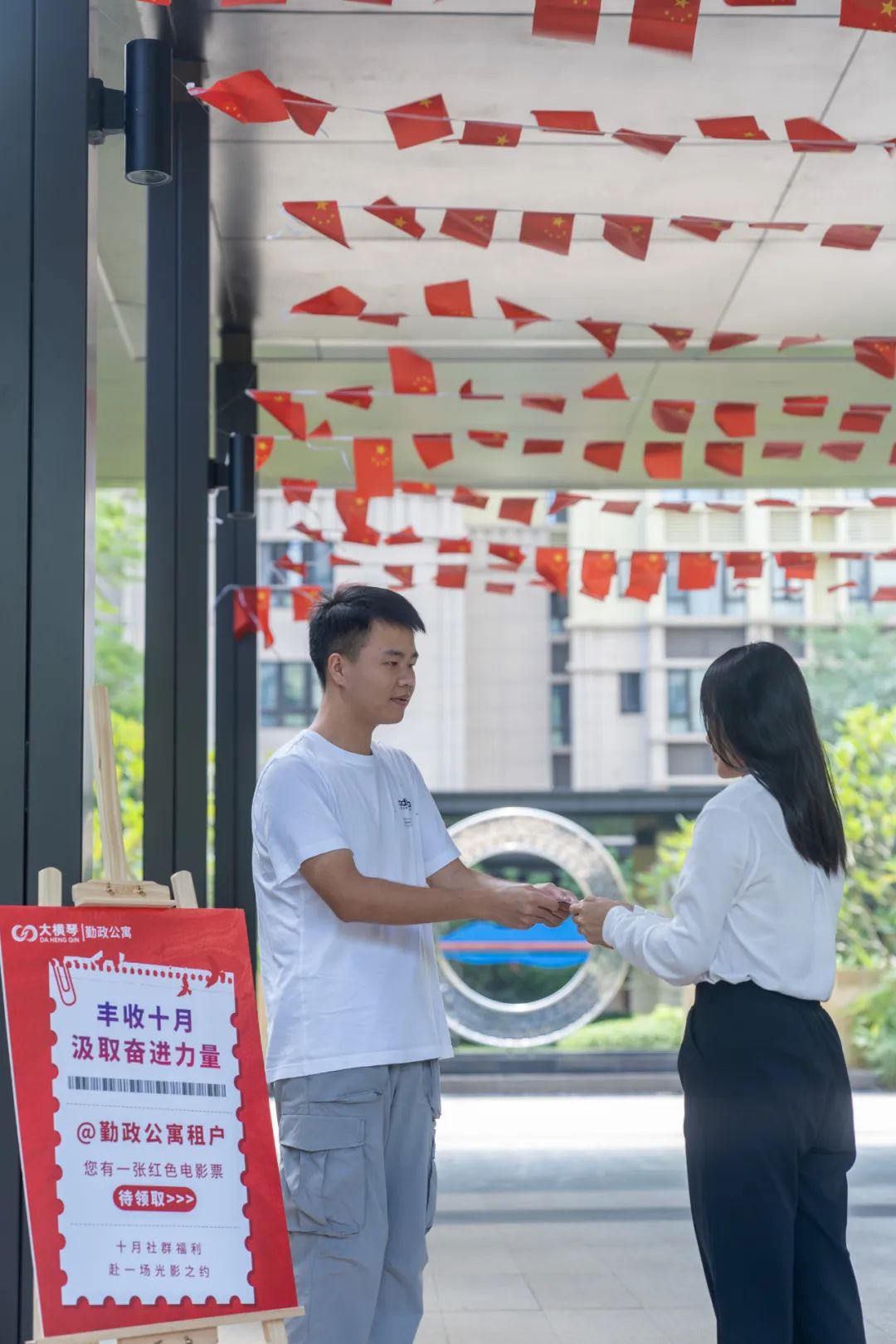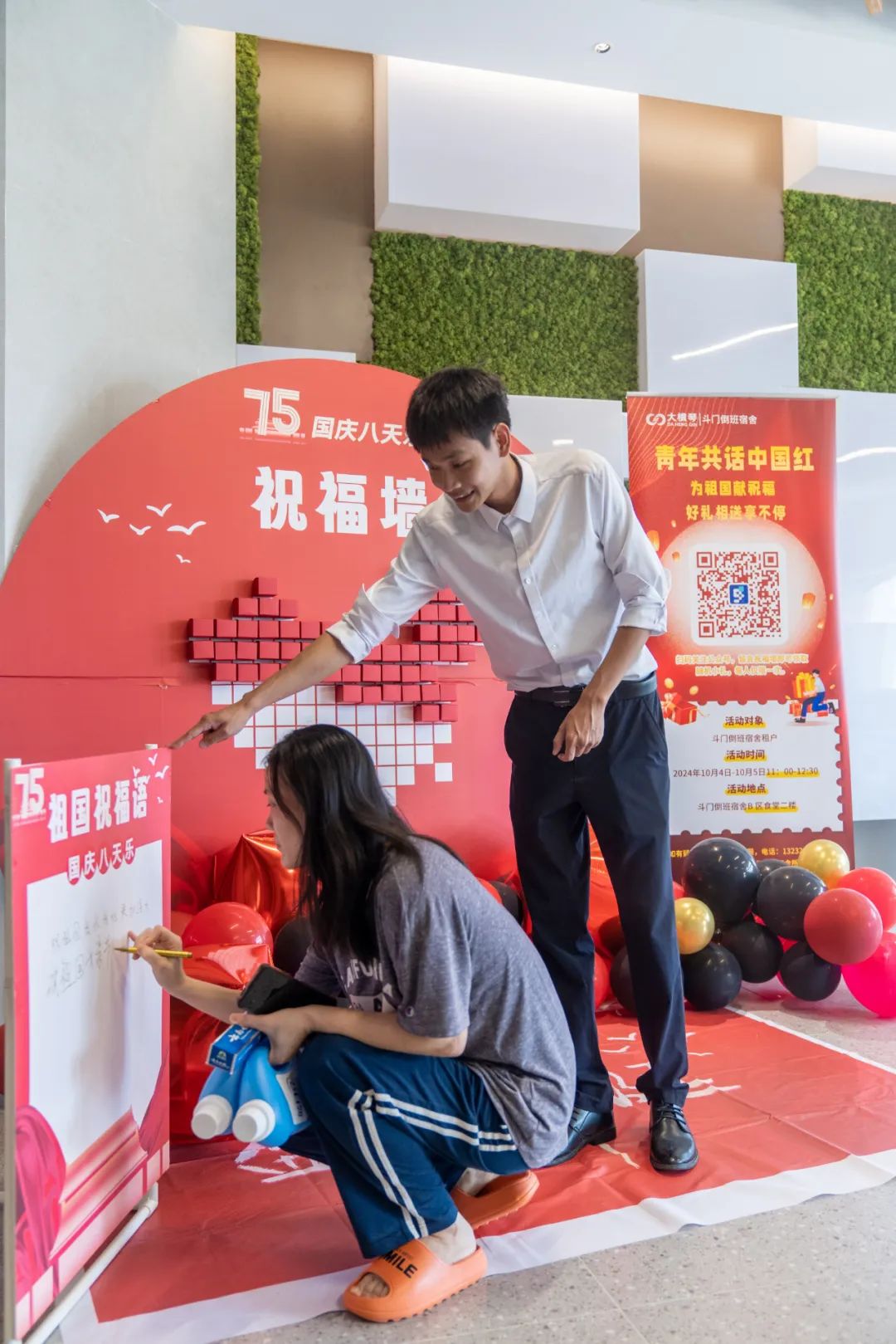 此外,大橫琴泛旅游公司也在旗下運營的多個公寓項目推出國慶特色主題活動,陪伴假期留駐的住戶們度過一個喜慶、歡樂的國慶佳節(jié)。國慶黃金周期間,勤政公寓開展了“豐收十月 汲取奮進力量”活動,通過播放免費電影豐富住戶生活,傳播奮進力量;斗門大橫琴5.0產(chǎn)業(yè)新空間倒班宿舍也開展了 “青年共話中國紅”國慶主題抽獎活動,設置留言祝福墻,以青春之言,表白祖國。