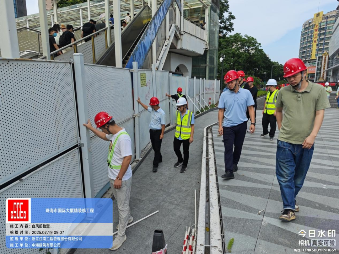 為切實(shí)做好臺(tái)風(fēng)“韋帕”防御工作,及時(shí)排查并消除項(xiàng)目各類安全隱患,7月19日,珠光國(guó)際大廈組織開展安全檢查工作,對(duì)項(xiàng)目施工現(xiàn)場(chǎng)的臨時(shí)用電設(shè)施、施工電梯等大型機(jī)械設(shè)備及工地材料堆放規(guī)范性等情況進(jìn)行了全面的安全隱患排查,確保項(xiàng)目排水系統(tǒng)暢通無阻、設(shè)施設(shè)備穩(wěn)固可靠,確保在臺(tái)風(fēng)來臨前將所有安全隱患消除到位。