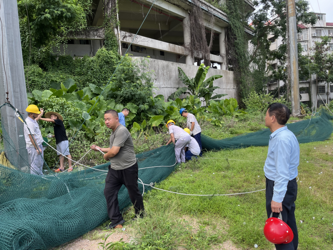 寶鷹建科迅速組織對(duì)所有在建項(xiàng)目的大型機(jī)械設(shè)備、工地的活動(dòng)板房(辦公區(qū)、生活區(qū))、圍擋、加工棚、安全網(wǎng)等臨時(shí)設(shè)施進(jìn)行全面檢查和加固。對(duì)所有工地的臨時(shí)用電線路、配電箱(柜)進(jìn)行排查,臺(tái)風(fēng)來臨前切斷除應(yīng)急照明、排水設(shè)備外的所有非必要電源,防止觸電和電氣火災(zāi)事故。