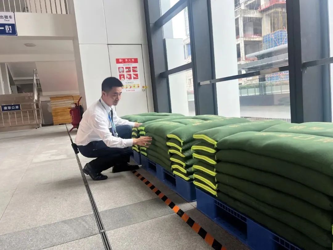 大橫琴口岸公司出動(dòng)30余人次,對(duì)口岸及周邊排水管網(wǎng)、集水井、水泵房的疏導(dǎo)清掏,保障排水順暢;調(diào)動(dòng)沙包2800余條,緊固件等物資,加固口岸340扇玻璃門。組織檢查水、電、暖通以及消防設(shè)備的運(yùn)行狀態(tài),共檢查了發(fā)電機(jī)組、板換設(shè)備、配電房和雨水提升泵等近20個(gè)設(shè)備設(shè)施進(jìn)行檢查,保障了口岸的正常運(yùn)作。通過電子屏、電視屏、溫馨提示、廣播等載體實(shí)時(shí)更新傳遞臺(tái)風(fēng)預(yù)警信息、通關(guān)/閉關(guān)情況、外圍交通狀況,積極、耐心的與旅客解釋,方便旅客調(diào)整行程,保障旅客的安全。